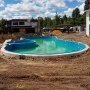 Фото работ как можно оформить и обустроить необычные вкапываемые пластиковые полипропиленовые бассейны для дачи или загородного дома.
