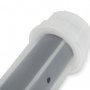 Аэрационный элемент представляет собой ПВХ-трубу с отверстиями большого диаметра. На трубу натянута мембрана, которая фиксируется винтовыми заглушками. В одной из заглушек закреплен патрубок для подвода воздуха Ø20 мм.